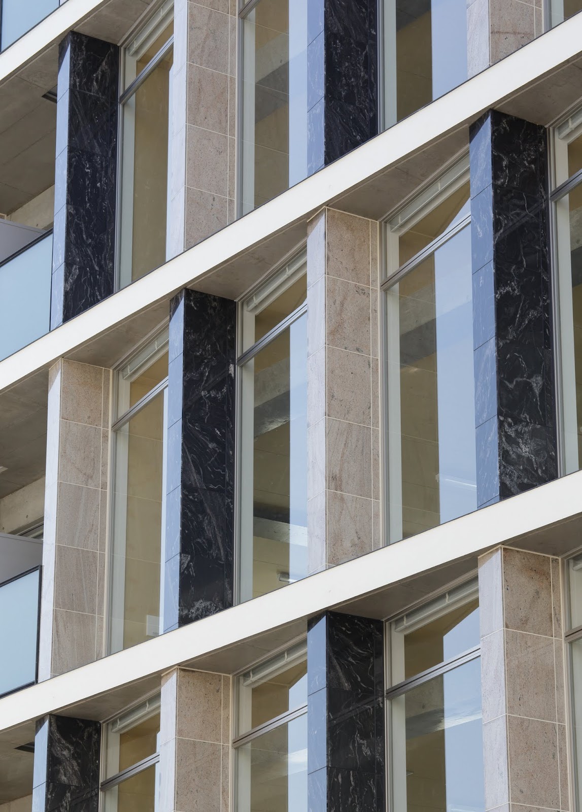 竣工:2015.5大泉学園北口から至近の賑わいのある商業地域。台形状の地形でメインのバス通りに間口が広く接しており大変視認性も良い立地である。ファサードは敷地形状の特性を生かし、小壁とガラスで規則的に雁行させ、濃淡の御影石を千鳥状に配色した。周囲のマンション形式やカーテンウールなどの画一的なファサードが多い中、テナントビルとしてのフレキシビリティを十分に考慮しながら、気品、重厚感が漂うランドマークを目指した。