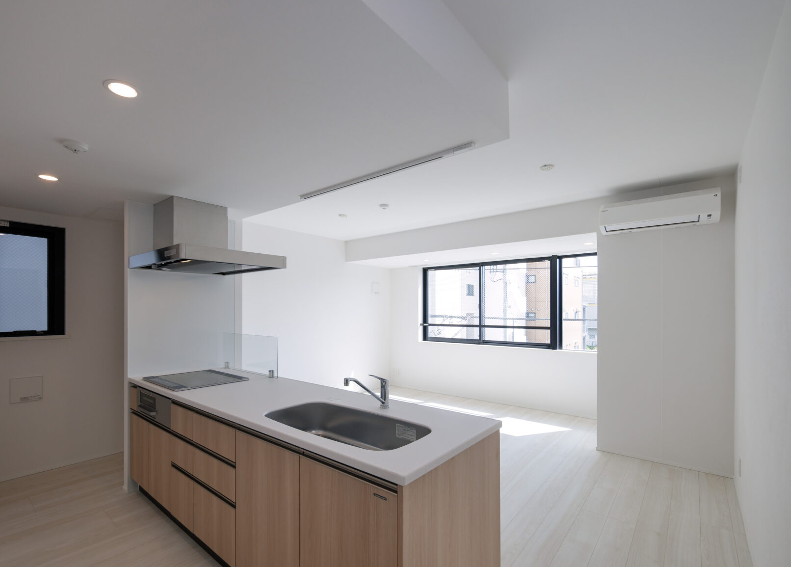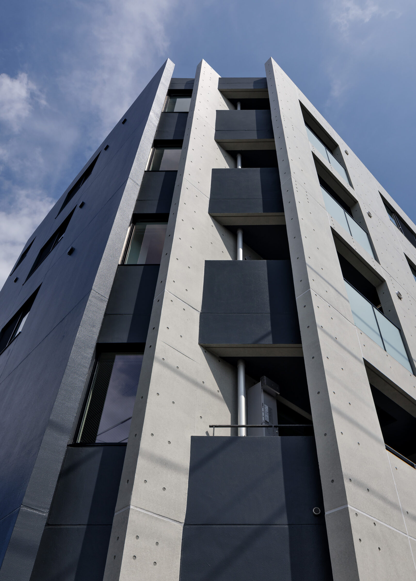- 駅に面するファサードは素材本来の質感である打ち放しコンクリートを採用することで、時代に左右されない普遍性により街との調和を図った。