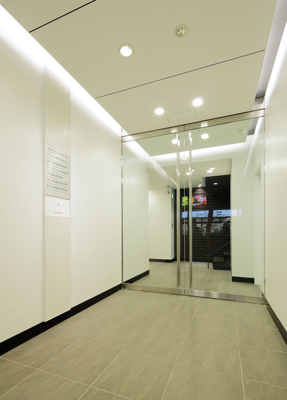 竣工:2010.12エントランスの改修、給水方式の変更、バリアフリー改修を含む大規模改修プロジェクト。建物全体の収益性を向上させる目的で、屋上の倉庫部分を天空に開放、給水方式を変更することで不要となった受水槽置き場の容積を最も収益性の高い1階に移転、既存駐車スペースを店舗に変更した。ビルの顔をあるエントランスホール周辺を改修することで、ビル全体の収益性を大幅に向上させることに成功した。