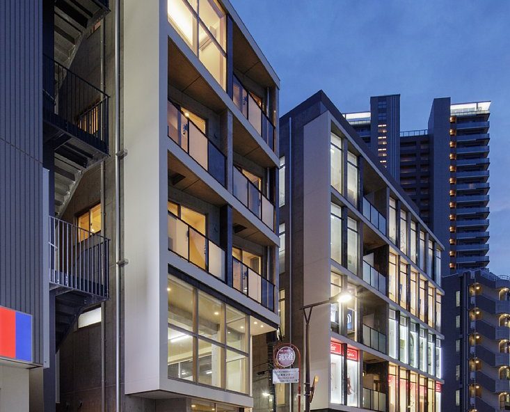 竣工:2015.5大泉学園北口から至近の賑わいのある商業地域。台形状の地形でメインのバス通りに間口が広く接しており大変視認性も良い立地である。ファサードは敷地形状の特性を生かし、小壁とガラスで規則的に雁行させ、濃淡の御影石を千鳥状に配色した。周囲のマンション形式やカーテンウールなどの画一的なファサードが多い中、テナントビルとしてのフレキシビリティを十分に考慮しながら、気品、重厚感が漂うランドマークを目指した。
