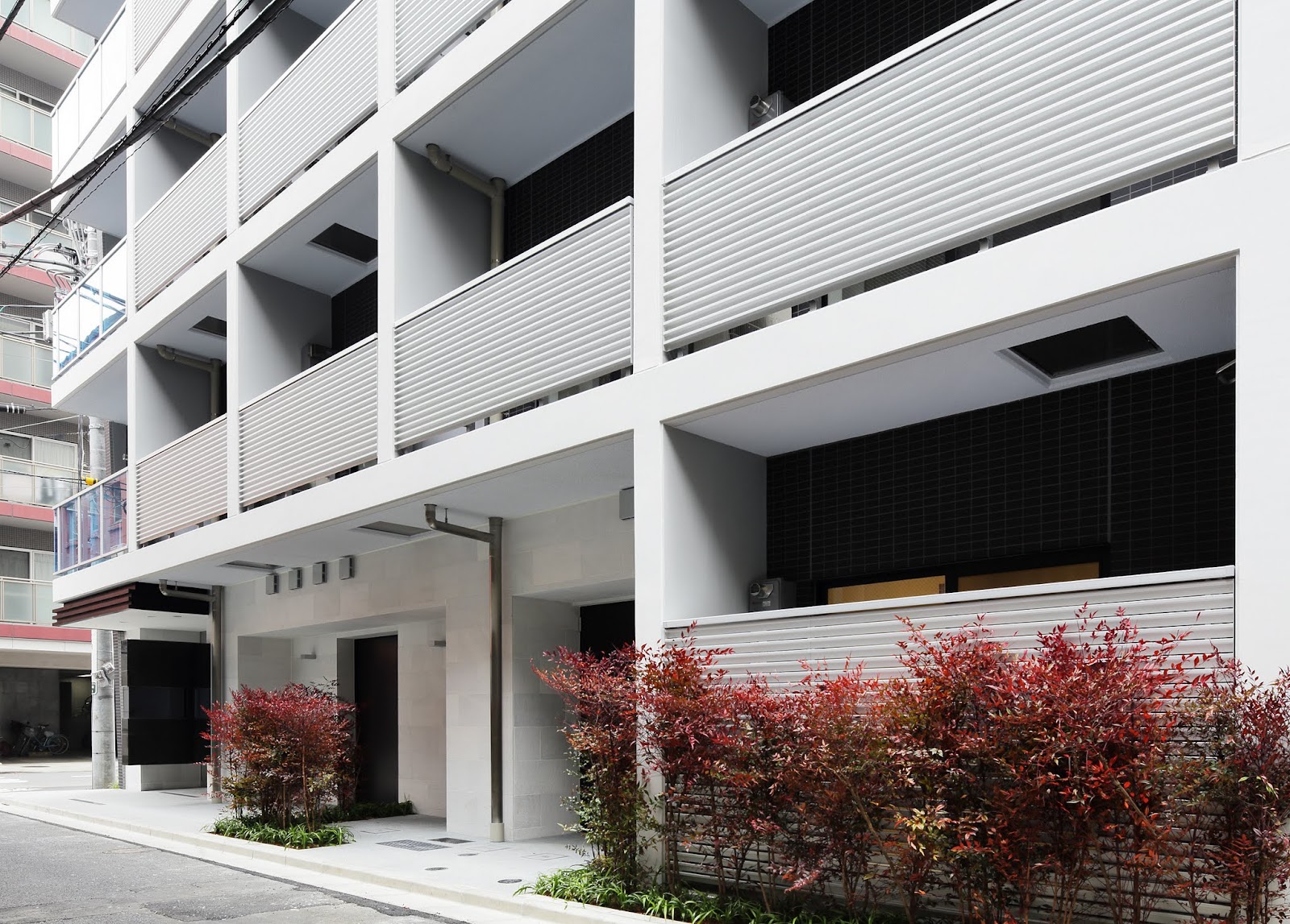 竣工:2013.2敷地は管状7号線に面する都内でも交通量の多い地域。後背地に低層の住居地域が拡がる敷地条件のため、建物の形態が主に日影規制により決定されている。建物はダークブラウン壁面部分をコンクリート打ち放しの壁がつつみ込むような形態をとり、手摺に有孔折版を設けている。有孔折版は地上に近い階から上階になるにつれ開口率を上げ、プライバシーの確保と部屋内からの開放性の両立を意図した。2013-04-15 -