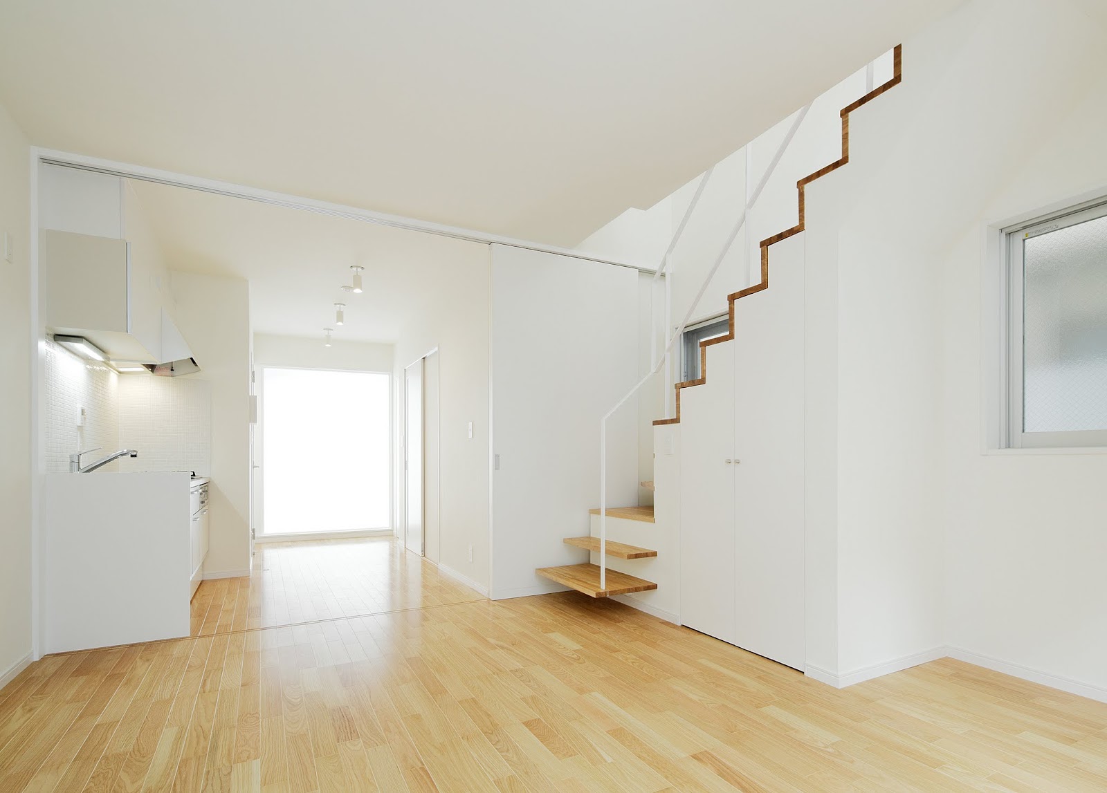 竣工:2012.3敷地は世田谷区内の国道沿いから一歩入った閑静な住宅地に位置する。二項道路に2mしか接しておらず、斜線制限、採光等の計画上、施工上の困難を伴う条件であった。そのような敷地の持つ困難な条件を克服し、可能性を最大限に引き出すことを目的とした計画となっている。内装は賃貸住宅として、明るく、清潔感のある印象が得られるように意図している。
