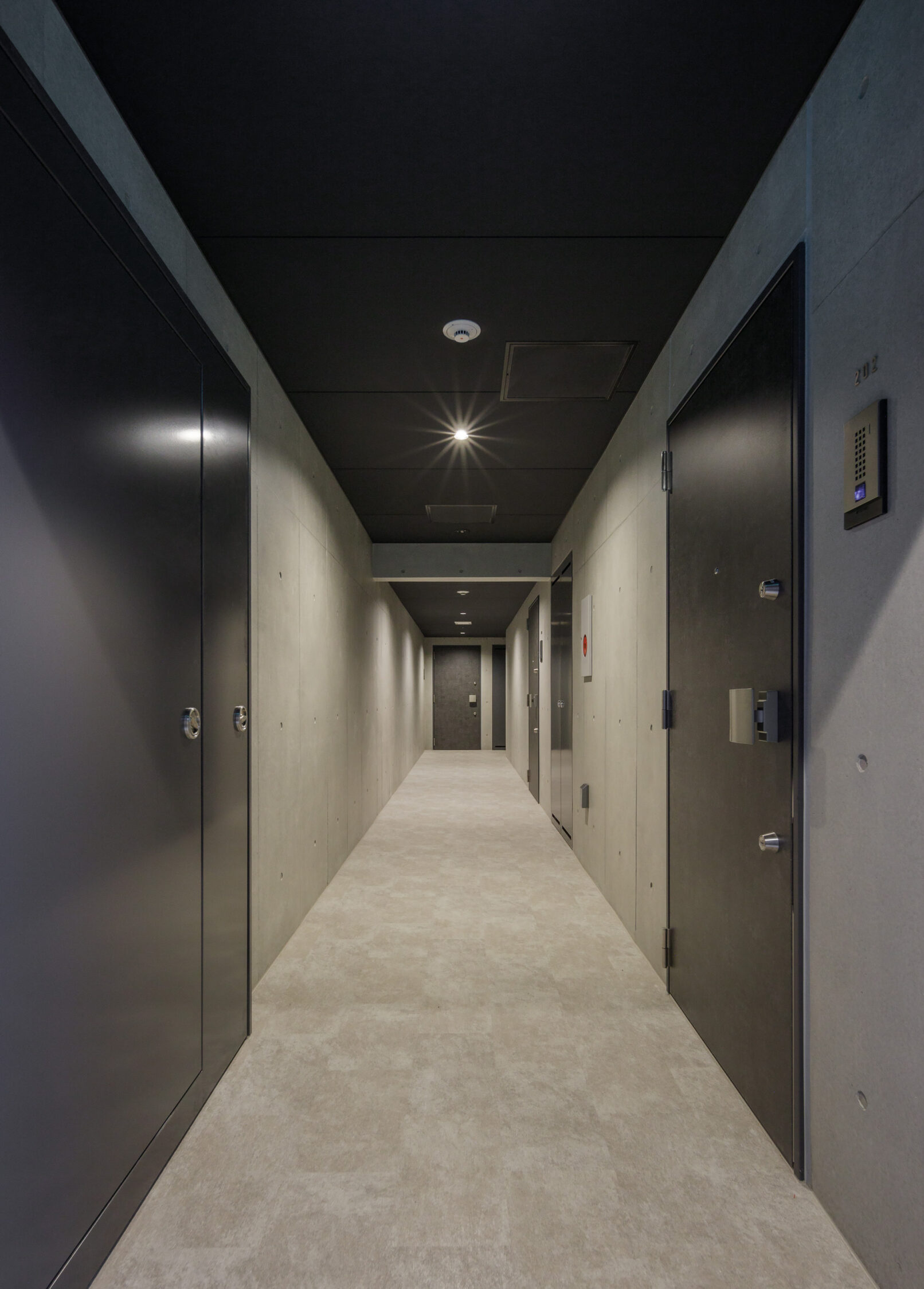 - 外観は極力梁型を見せない構造とすることで、スタイリッシュで都市の中で際立ちながらも、街に調和する建築を目指している。