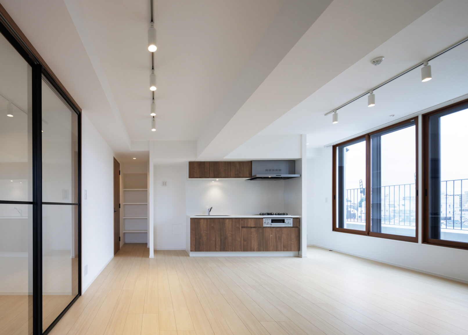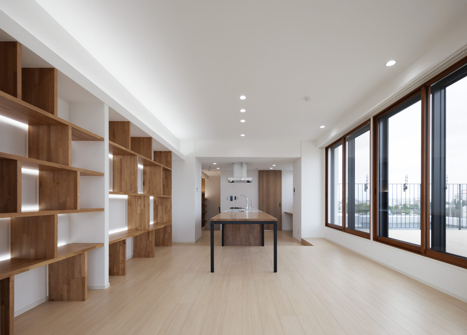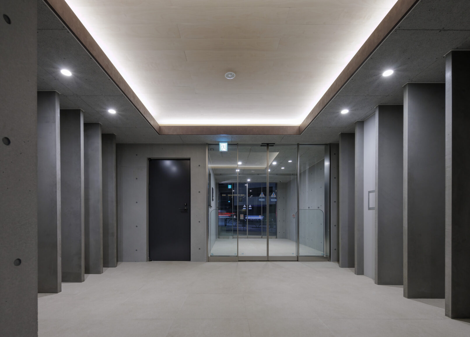 - 計画地は環状七号線に面しているため、バルコニーには道路からの視線を遮る目的で、アスロックルーバーを採用した。