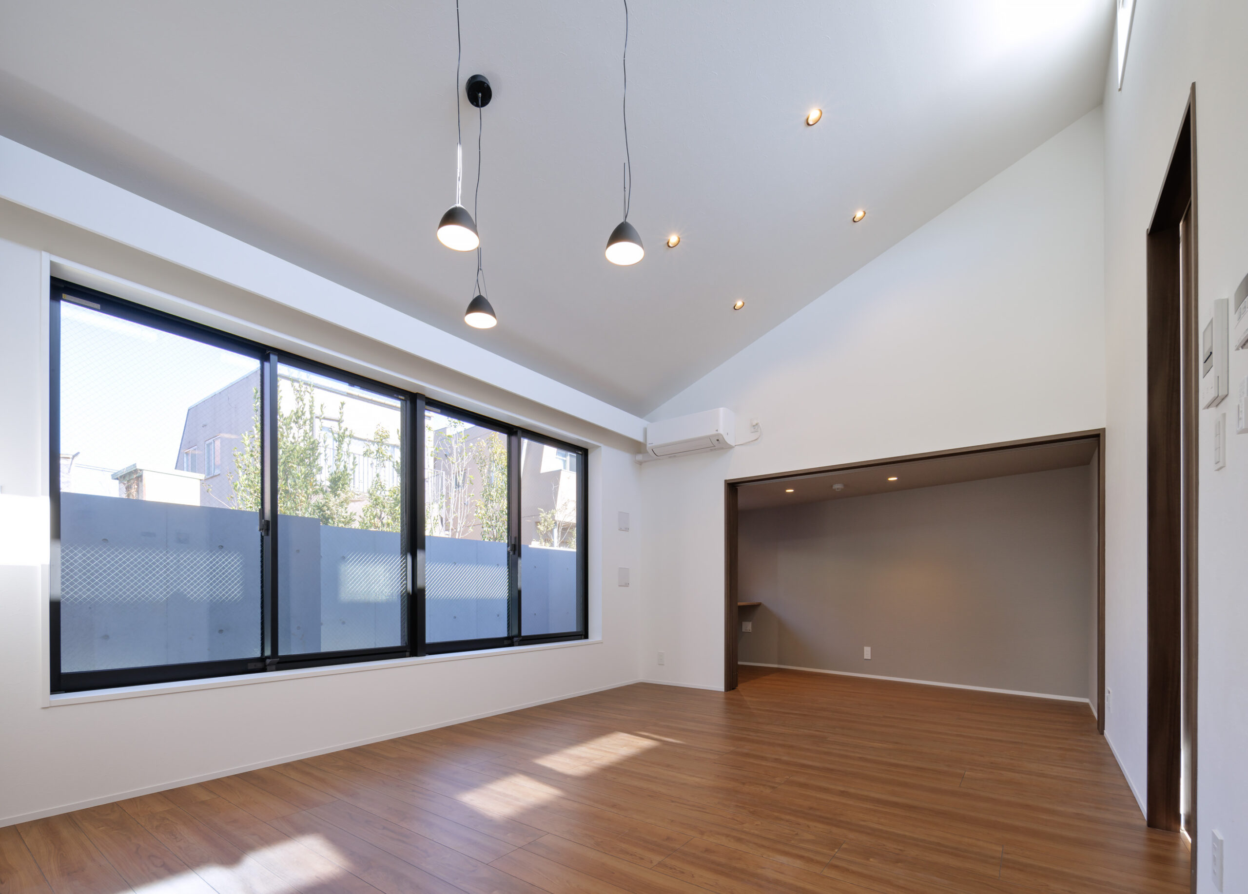 - 本計画では、建物と外構に一体感を持たせるよう外構・建物ルーフに植栽を配置し、敷地全体で緑を感じられる空間を構成した。住戸内からも植栽を望むことができ、日常に自然を取り込んだ豊かな住環境を目指した。