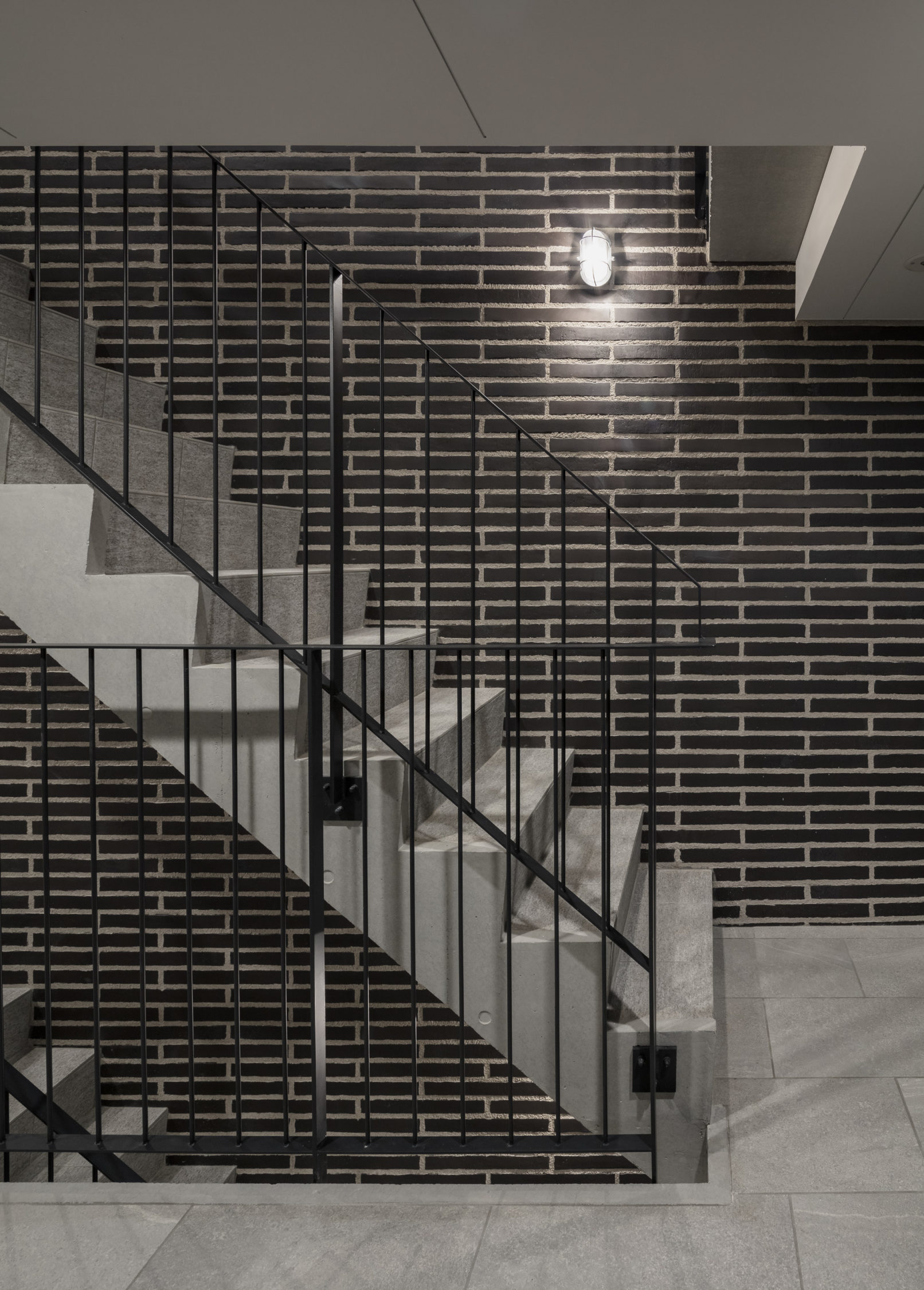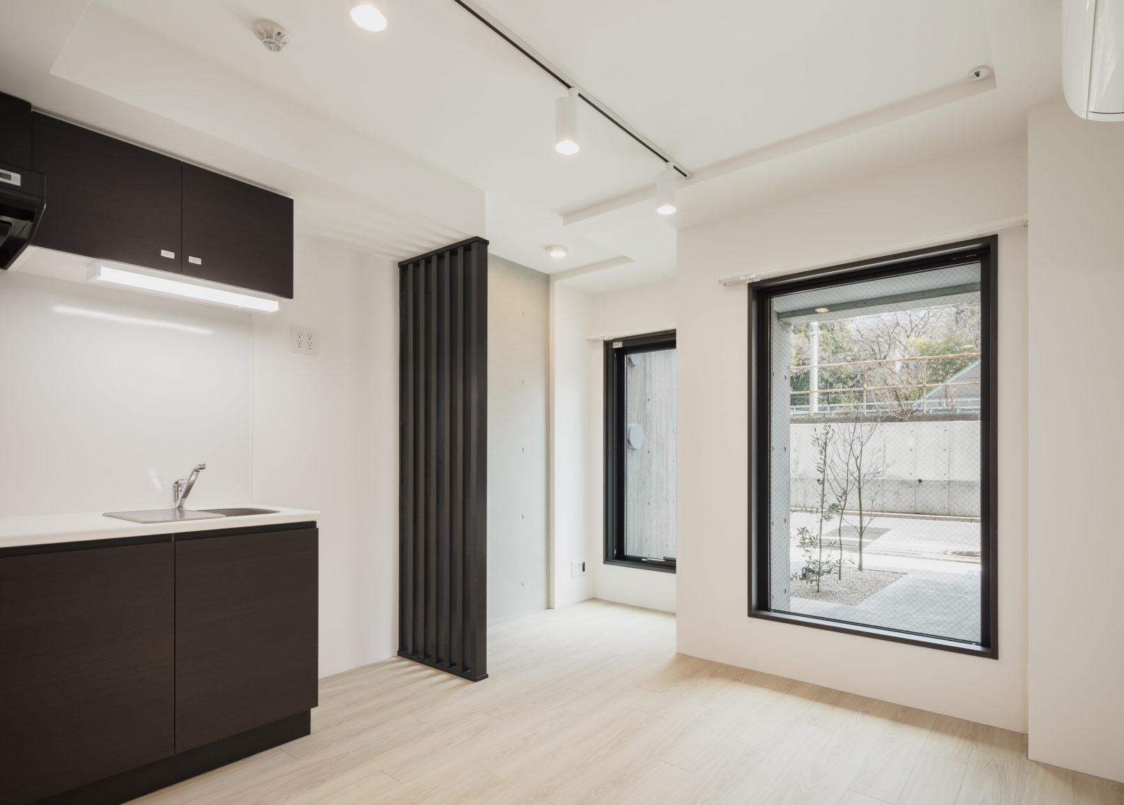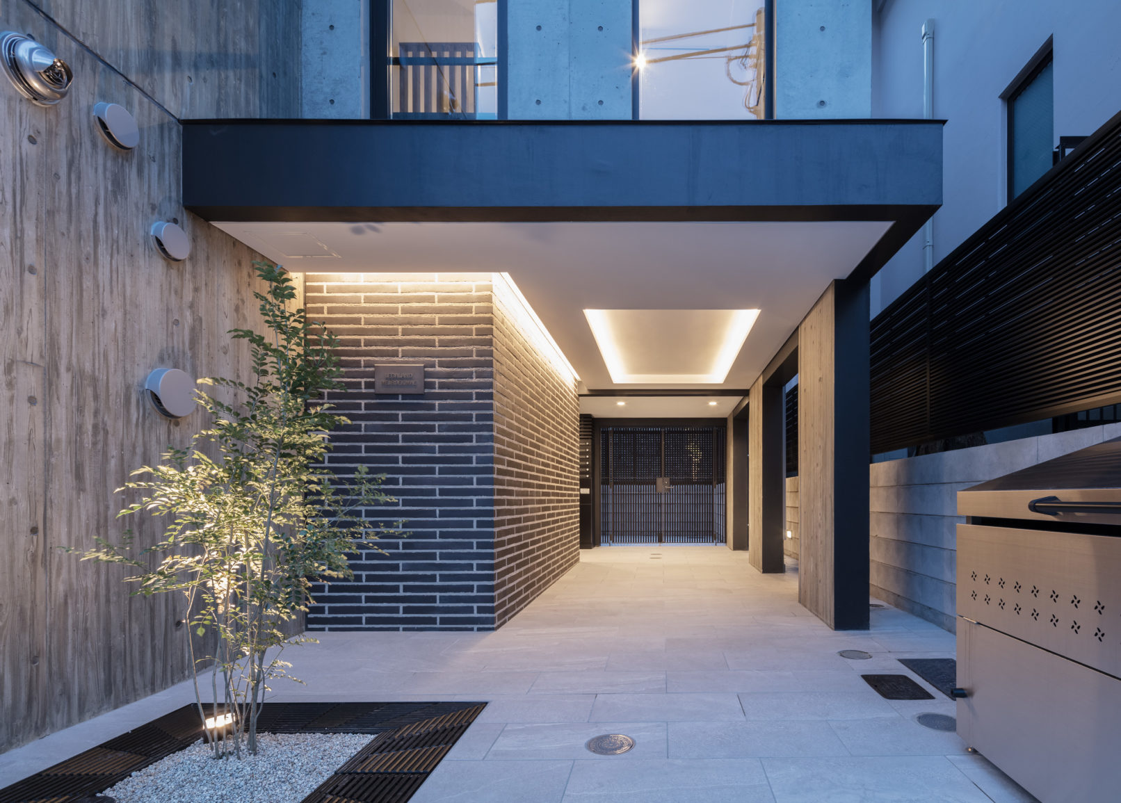 - 目白の丘は江戸時代から大名や旗本が屋敷を構えており、明治以降は屋敷や旧華族などの豪邸跡を利用した邸宅が作られ、国内でも屈指の高級住宅地である。また、敷地はJRの線路敷きに面し、背面は7Mを超える擁壁を背にした目白が丘の麓に位置している。LEGALAND目白駅前はこの街並みに自然に溶け込む気品さと、JR線からの視認性を意識したデザインを採用した。杉型枠を利用した深い味わいのコンクリート打放しや通常の二丁掛タイルの倍の長さあるタイルを用いて気品さを現し、それらのタイルと開口を一部千鳥配置として特徴ある個性的なデザインとしている。