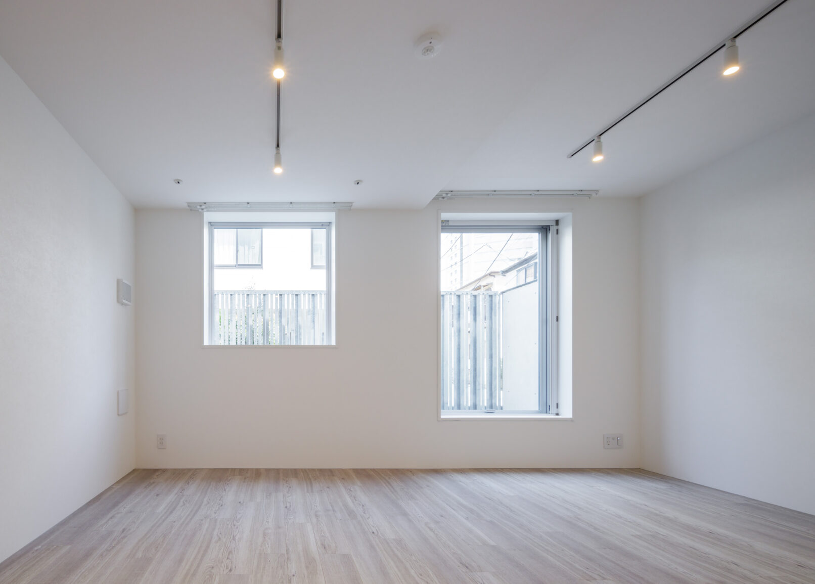 - 外壁にはタイルを選定し、町の景観を損なわないこと。また開⼝部を限定することによる、断熱性能を保持し、近隣住⺠へも配慮された計画とした。
