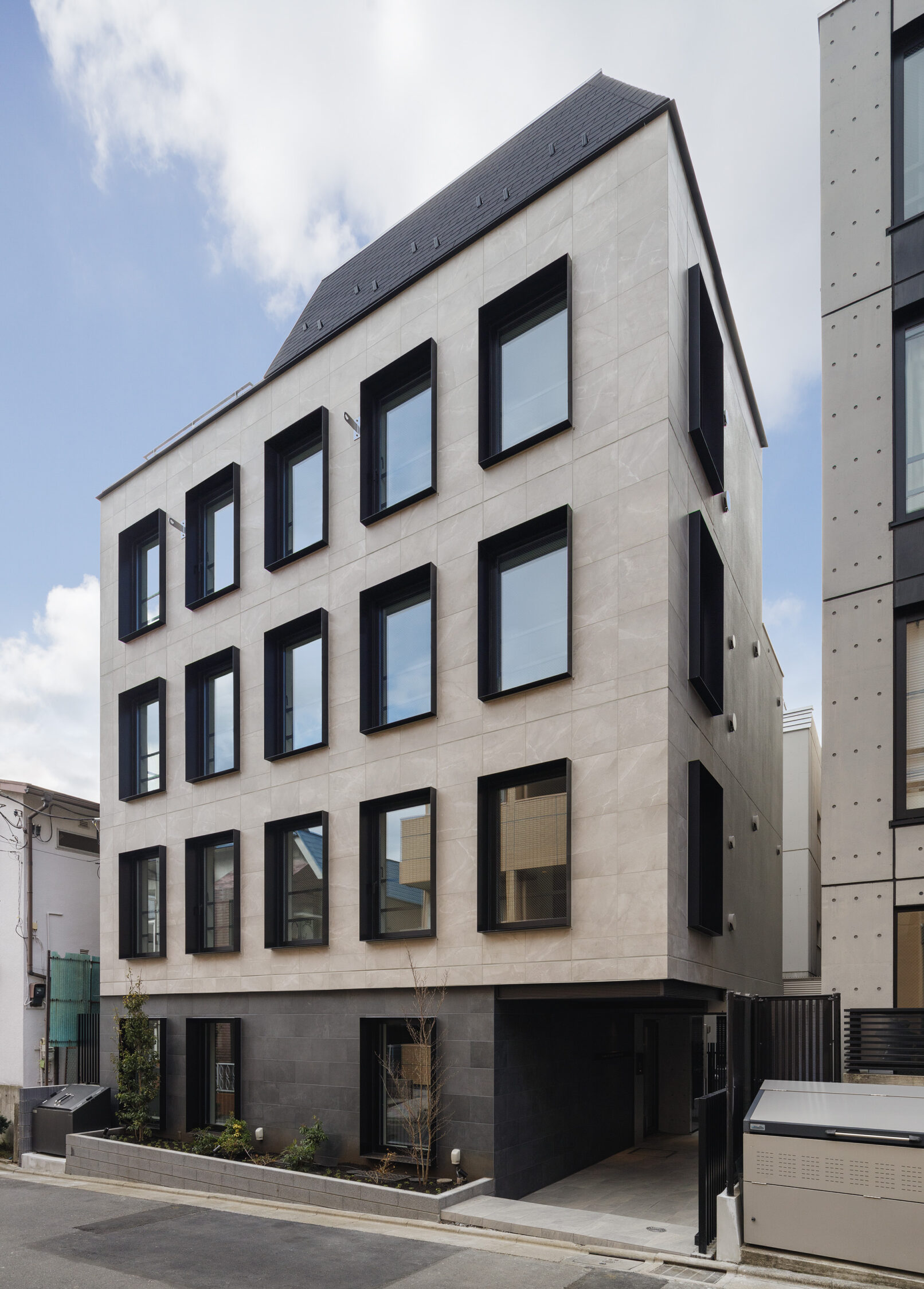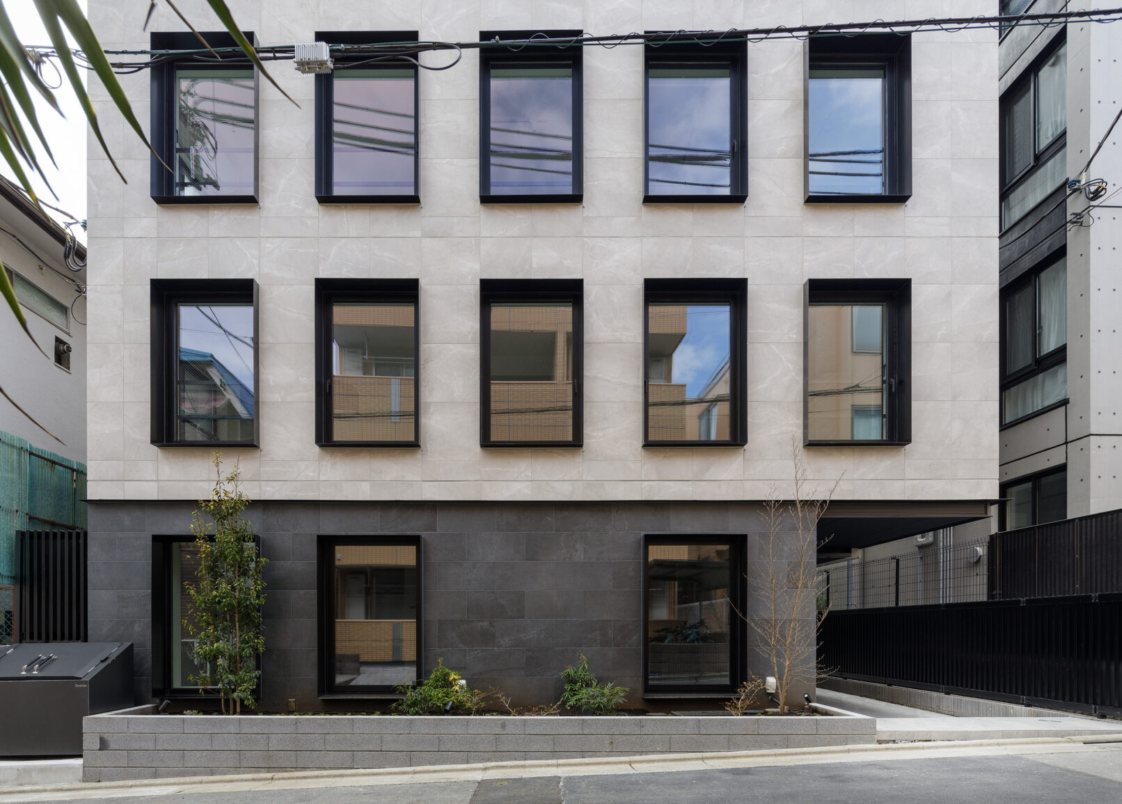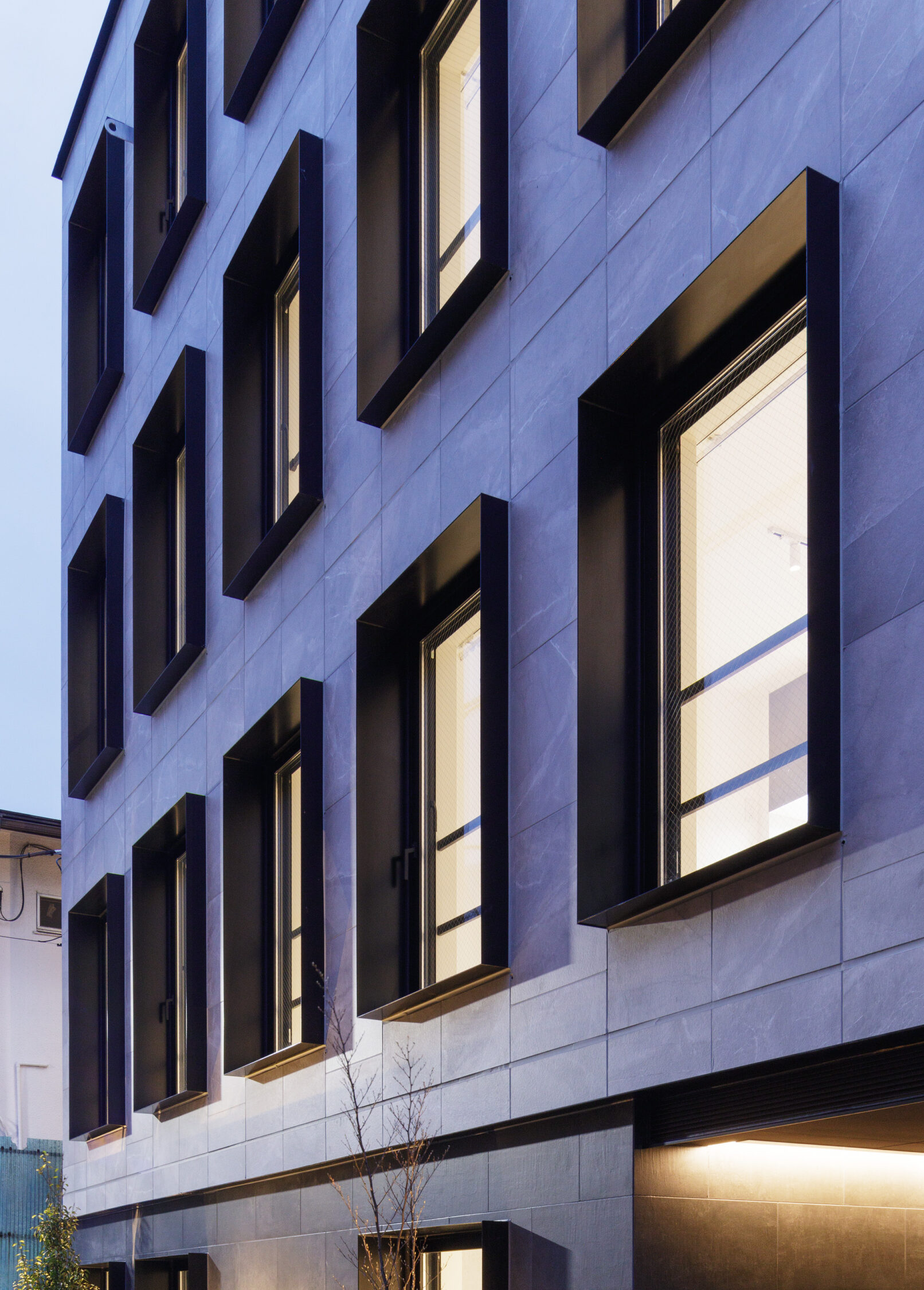 - 規則的に並ぶサッシと四方枠は、建物に陰影を持たせ、平坦な外壁とは異なる圧迫感を軽減したファサードとなることを試みた。