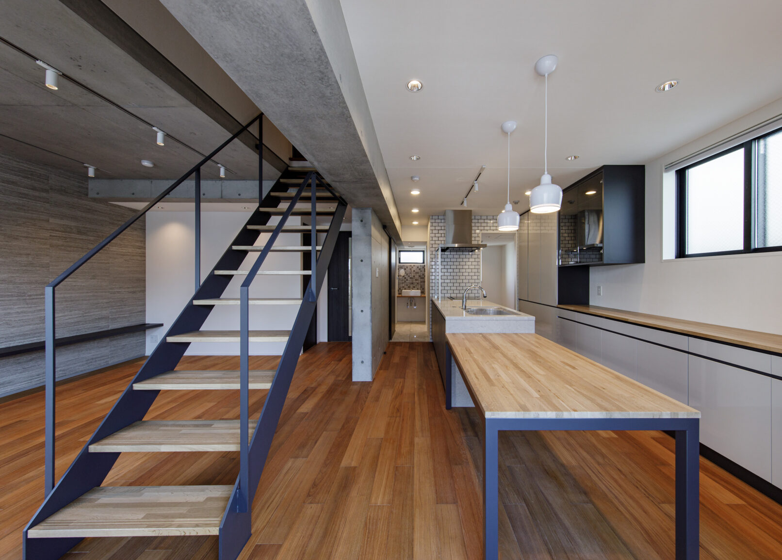 - オーナー住戸の一つはメゾネット形式を採用し、階段を中心とした回遊動線におけるシークエンス変化による空間表現が試みられている。
